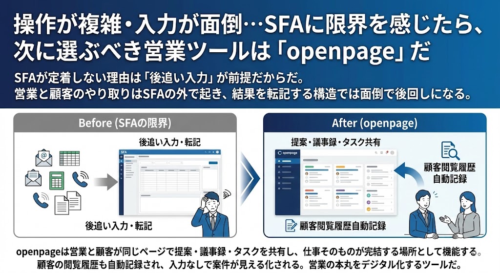 操作が複雑・入力が面倒…SFAに限界を感じたら、次に選ぶべき営業ツールは「openpage」だ