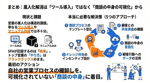 まとめ:属人化解消は「ツール導入」ではなく「商談の中身の可視化」から