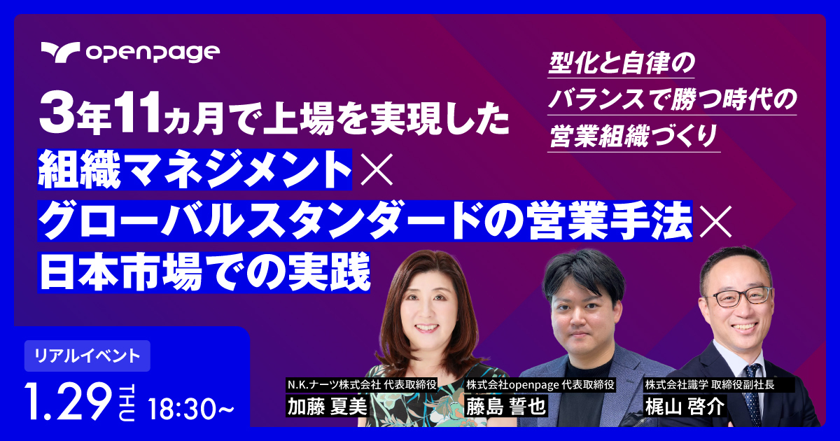・本セミナーは、株式会社openpage、株式会社識学、N.K.ナーツ株式会社が共同で開催いたします。 |